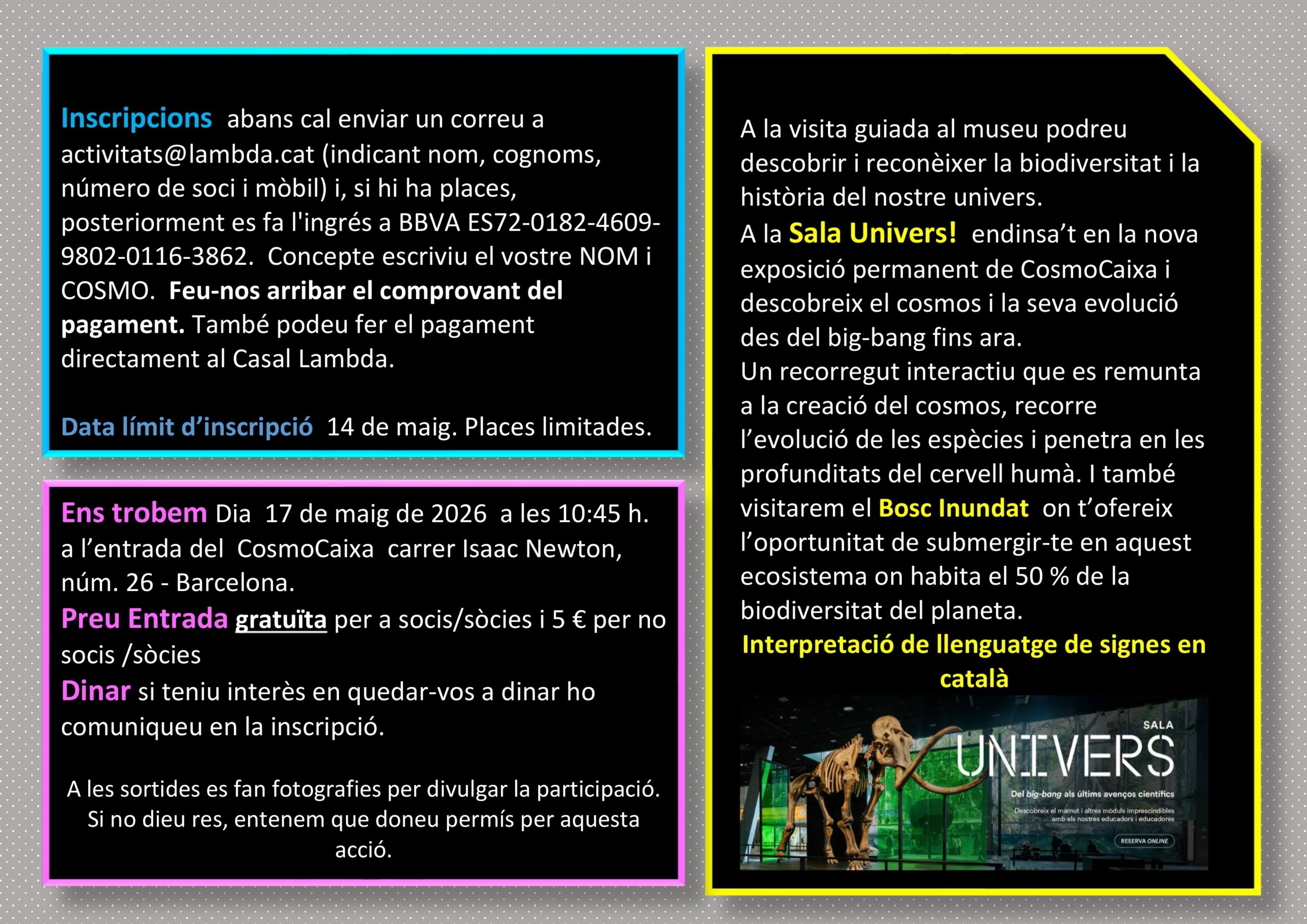VISITA AL COSMOCAIXA (SALA UNIVERS I BOSC INUNDAT)